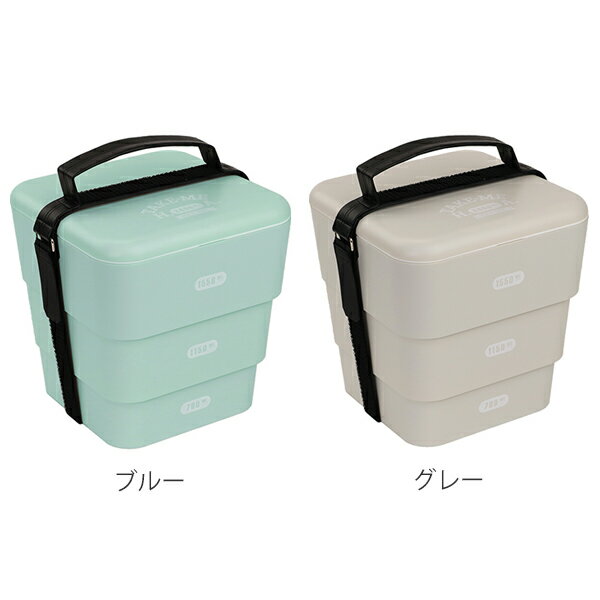 サイズ約 幅18×奥行18×高さ18.6(cm)内容量総容量:約3400ml(上段:約1550ml、中段:約1150ml、下段:約700ml)材質本体:ABS樹脂、手提ベルト:合成皮革・ナイロンカラーブルー、グレー生産国日本製備考電子レンジ、食洗機不可付属品:シール蓋、手提げベルト約3〜4人用サイズです。