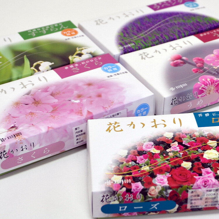 花かおり/さくら〔微煙〕 花かおり/ローズ〔微煙〕 花かおり/ラベンダー〔微煙〕 花かおり/すずらん〔微煙〕 花かおり/梅〔微煙〕 花かおりミニ寸(5種類) お試し線香[花かおり] 8種 各2本 花かおりご進物仕様