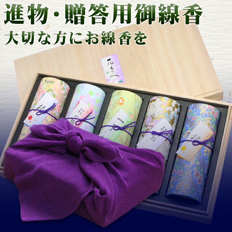 線香 贈答用 進物用 進物線香 お供え物 お線香 花くらべ 5種香 5筒入 桐箱入り 奥野晴見堂 【熨斗(のし) 包装 お悔やみ文 メッセージカード 無料】 一周忌 法要 お盆 贈答用線香