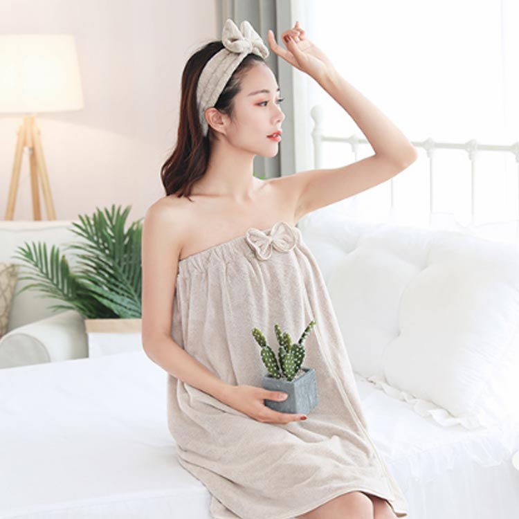 ふわふわマイクロファイバーワンピース風バスローブ。