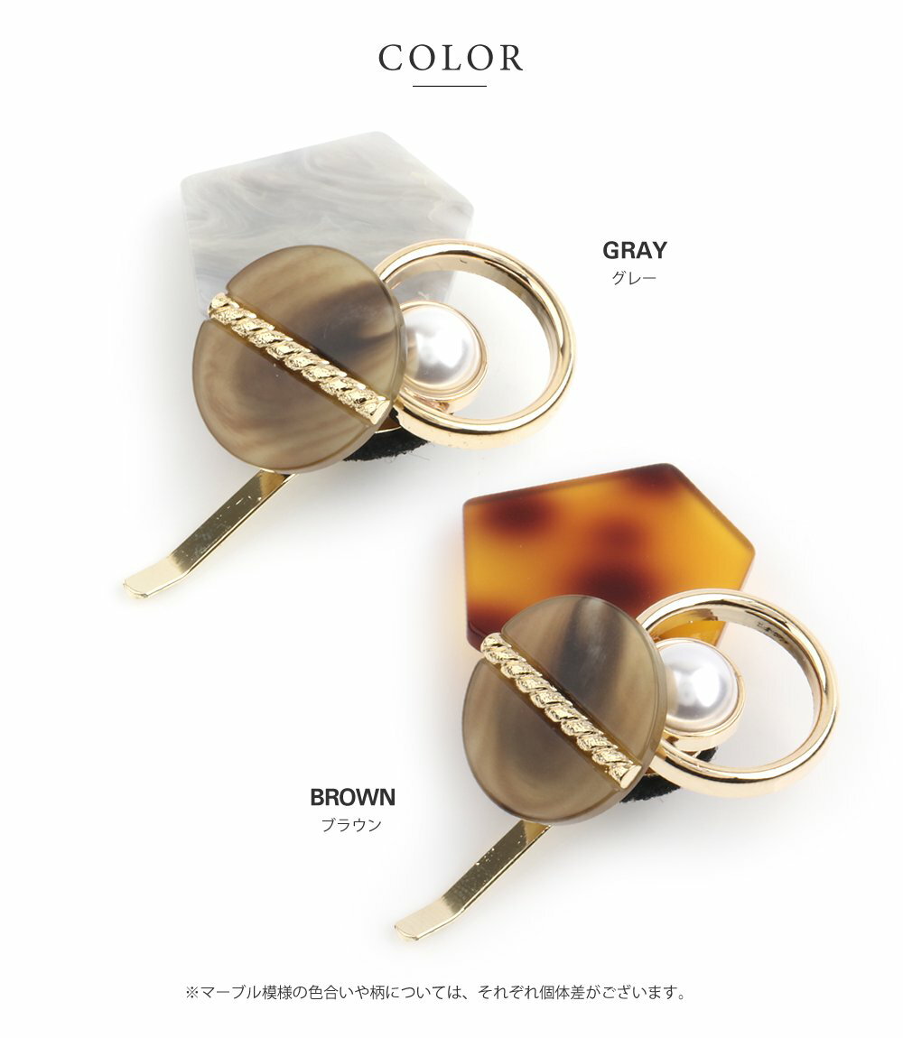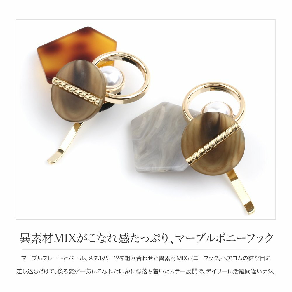 マーブルプレートとパール、メタルパーツを組み合わせた異素材MIXポニーフック。
