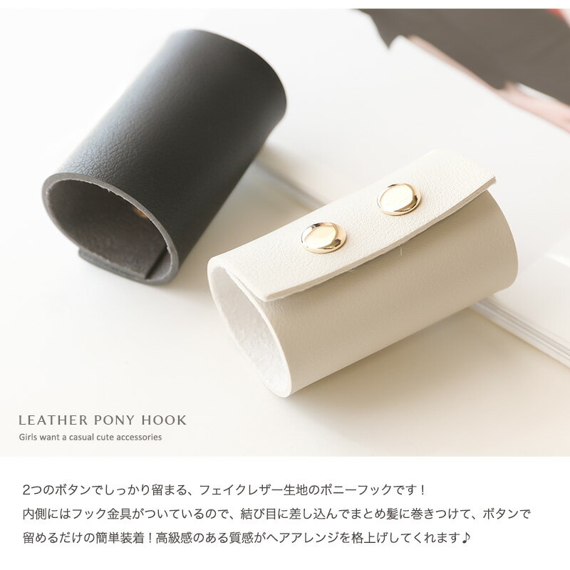 ポニーフック ヘアフック ヘアカフス エコレザー PUレザー ボタン 縦長 大人っぽい おしゃれ ヘアアクセサリー まとめ髪 合皮 上品 カジュアル 大人 ヘアゴム ブラック 黒 ベージュ モカ キャメル ネイビー レディース 女性 カジュアル デイリー 30代 40代 50代 ポイント消化 消費 ポニーテール ヘアアレンジ