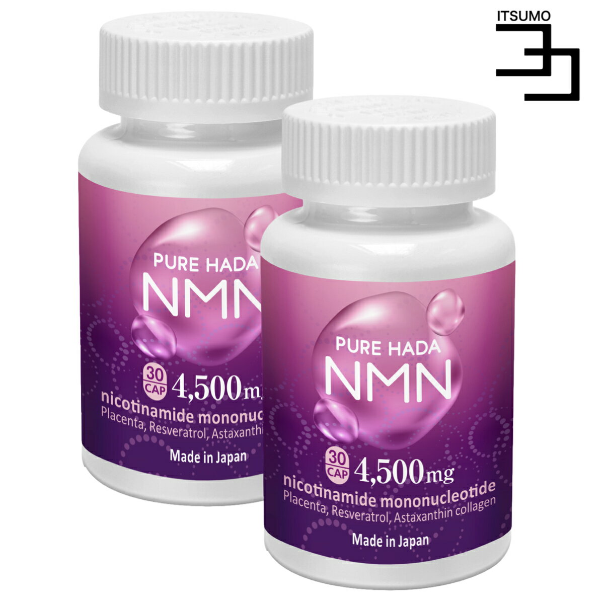 NMN 2個セット 高含有 4,500mg 1粒に150mg 高純度 100% PUREHADA プラセンタ レスベラトロール