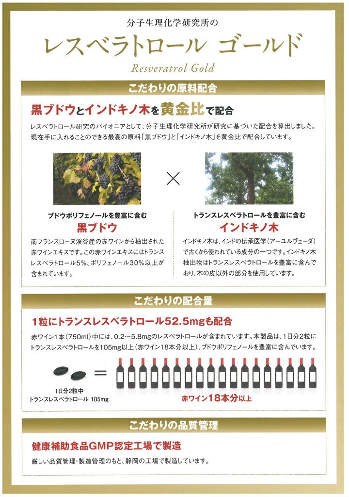 商品情報商品説明植物が体を守るためにつくるポリフェノールの一種であるレスベラトロール。