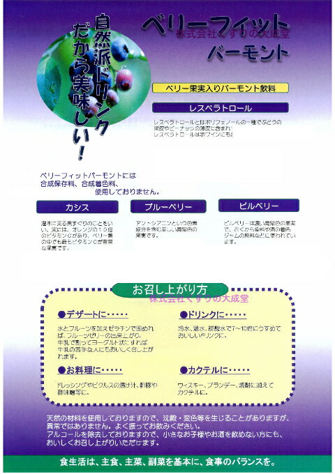 商品名 ベリーフィットバーモント 内容量 1000ml 3本 召し上がり方 本品は7-10倍濃縮タイプなので、1食15mlを冷水またはお湯でお好みの倍数(7-10倍を目安)にうすめてお召し上がりください。