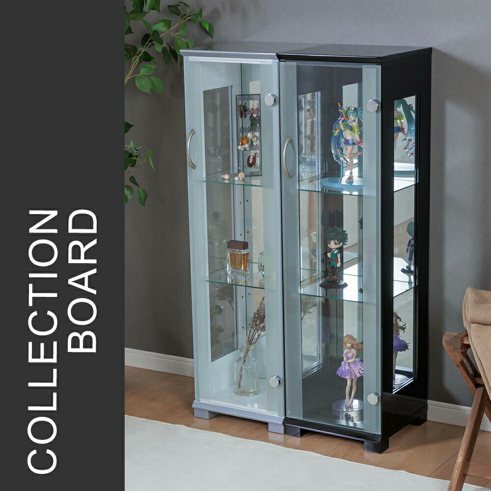 【アウトレット】 コレクションケース 幅30cm コレクションボード 完成品 ガラスショーケース ミドルタイプ キャビネット サイドボード 開き戸 什器 キュリオケース スリム 完成品 ホワイト ブラック [リリィ]